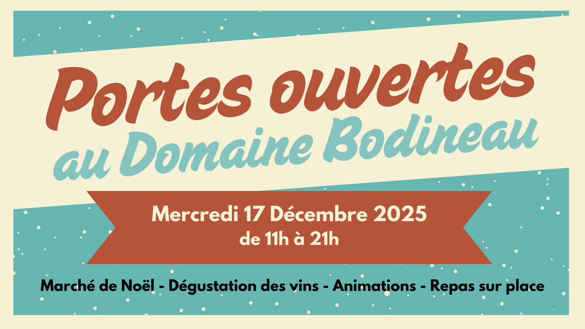 Le Domaine Bodineau, producteur de vins d’Anjou et de Coteaux du Layon, vous donne rendez-vous le mercredi 17 décembre 2025 pour une nouvelle édition de ses Portes Ouvertes d’Hiver. Une journée festive au cœur du vignoble, entre dégustations, découvertes artisanales et moments de convivialité à l’approche de Noël.