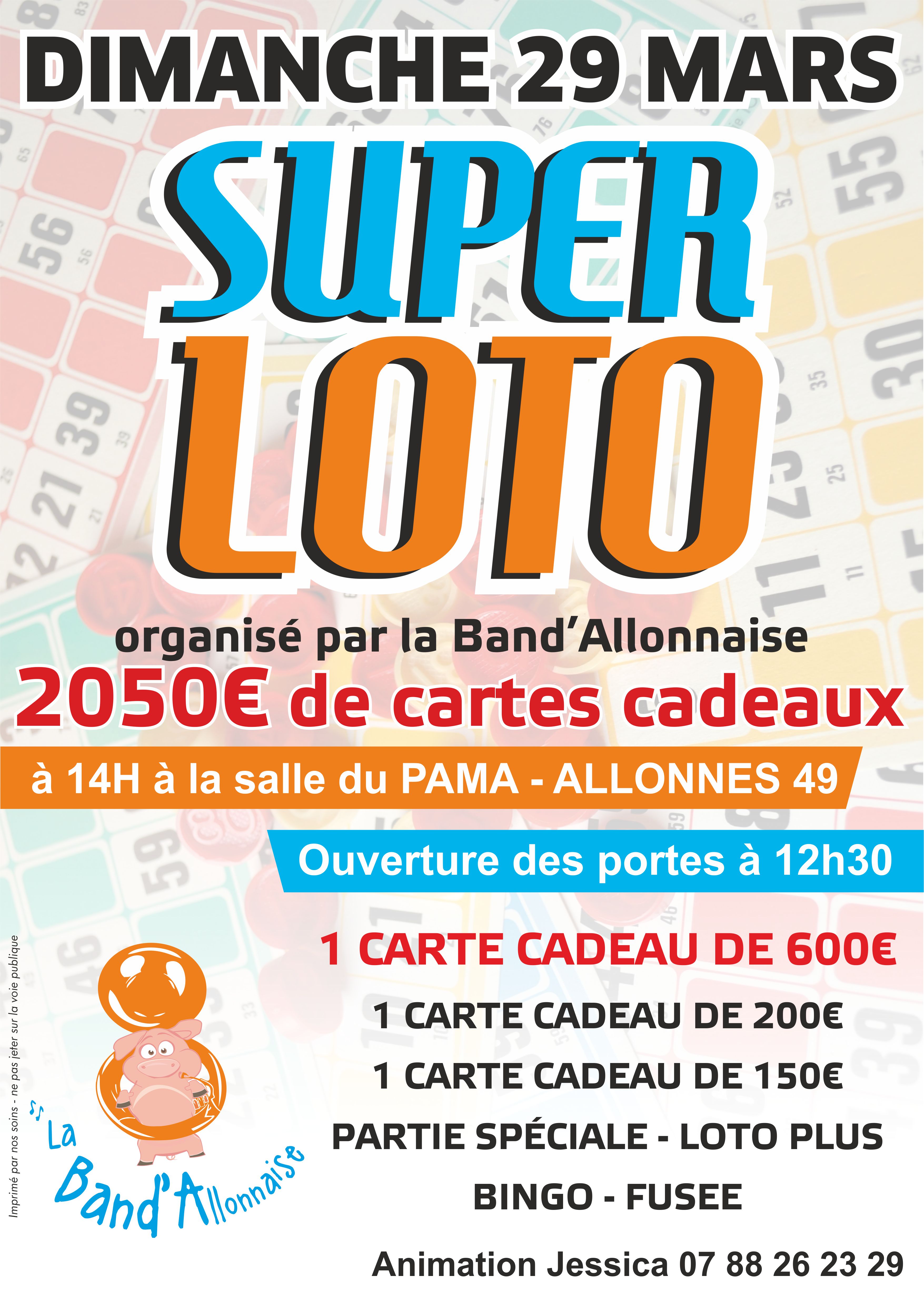 Super loto organisé par La Band'Allonnaise et animé par Jessica Grolleau.